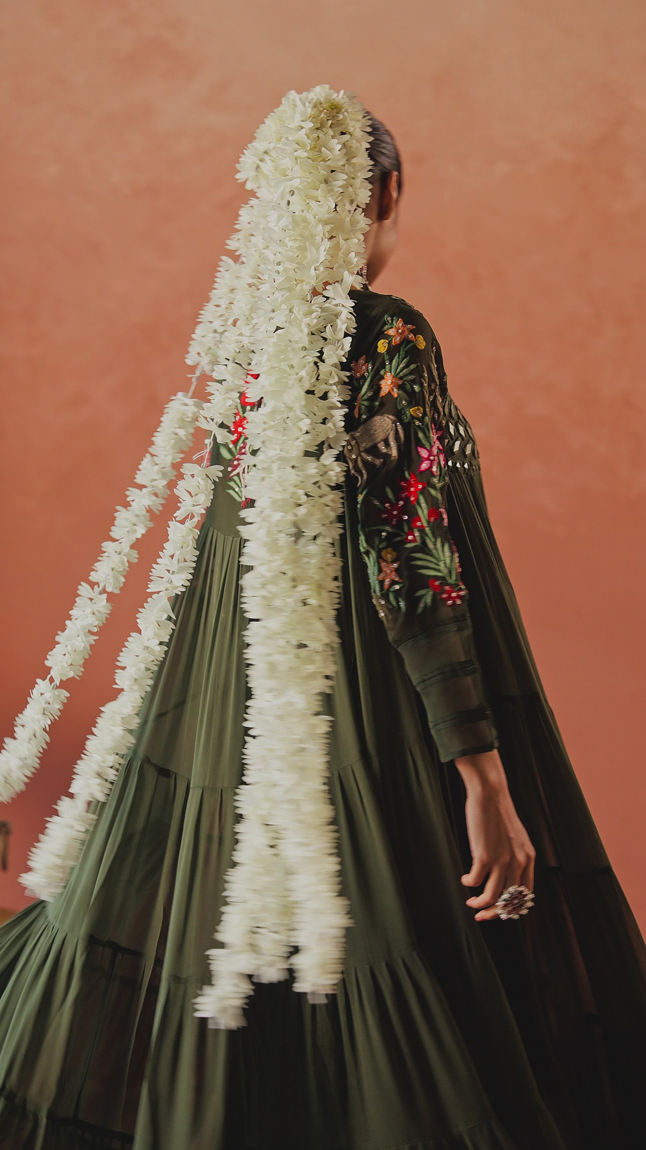 Bottle Green Embroidered Georgette Silk Anarkali Gown