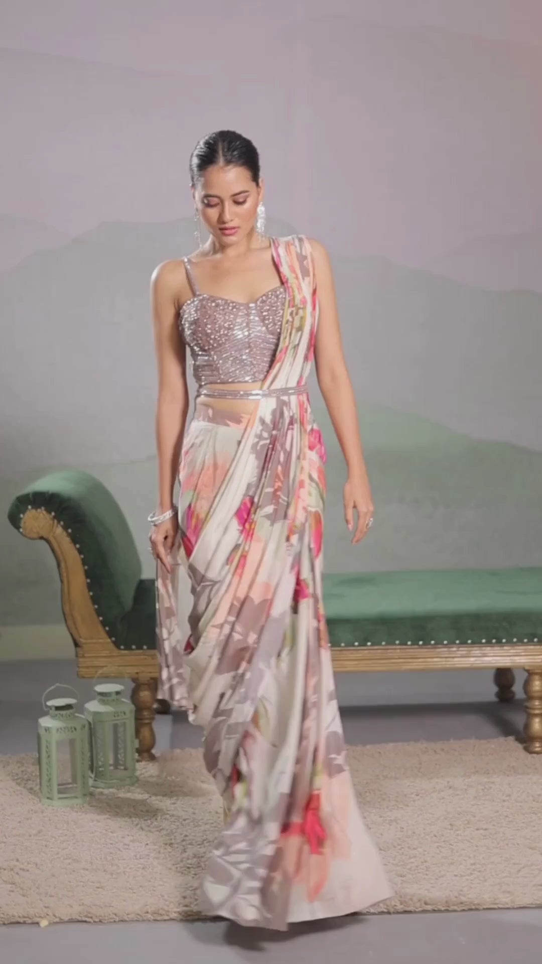 Introducing our Bright Cream Digital Floral Printed Chinon Silk Saree. This charming ensemble features intricate bead, cut dana and sequins handwork on the blouse and saree belt, creating a delightful look. Paired with a beautifully printed saree, this set is perfect for festive occasions, ensuring you exudes elegance and grace.