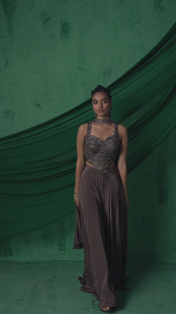 Copper Brown Embellished Satin Silk Sharara Set