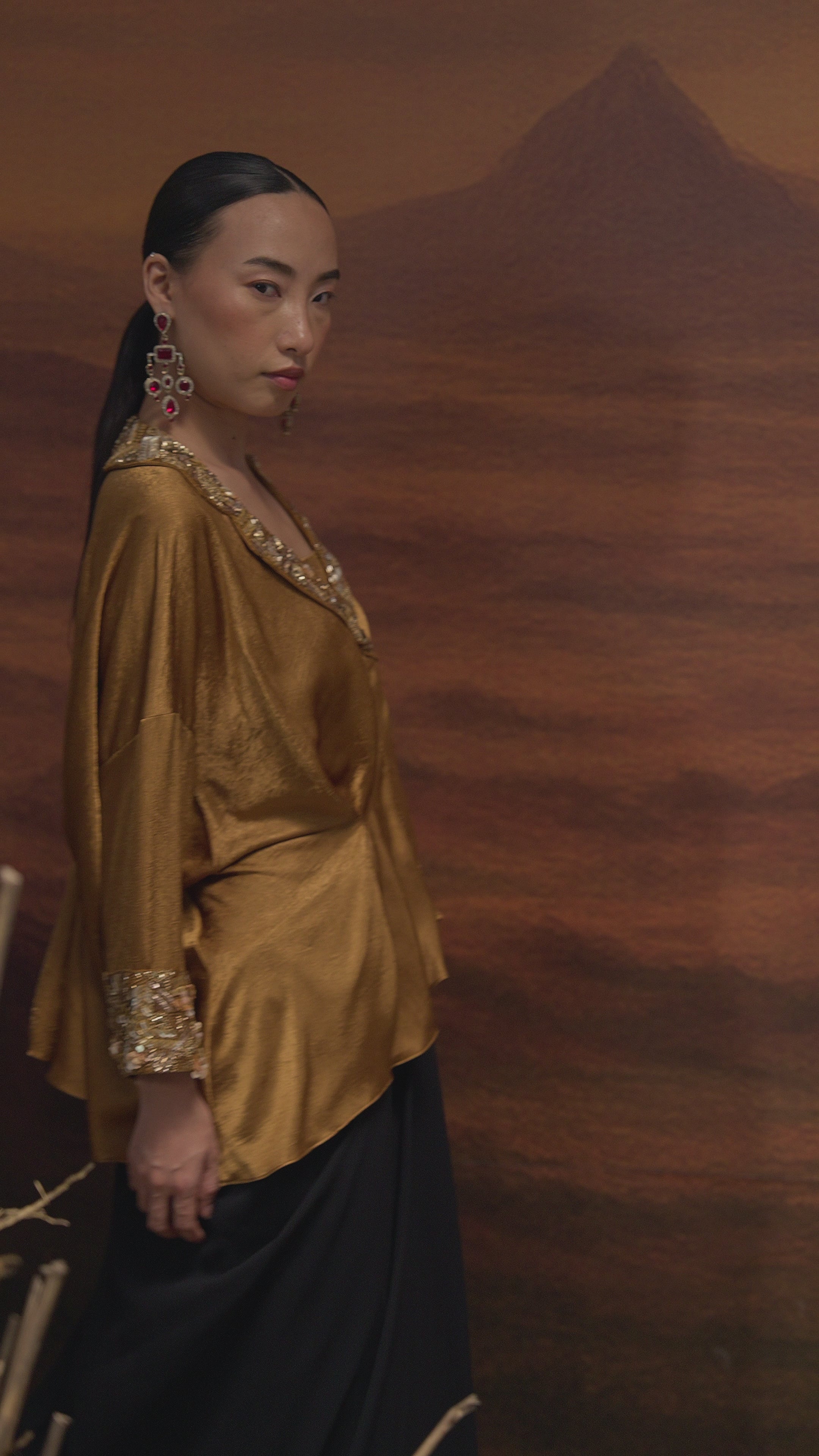 Make an unforgettable statement with this radiant Antique Gold Drape Set, blending luxurious textures and intricate embellishments to create a look of effortless elegance.
