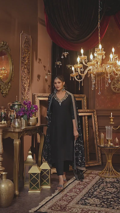 Classic Black Embellished Premium Silk Pant Set