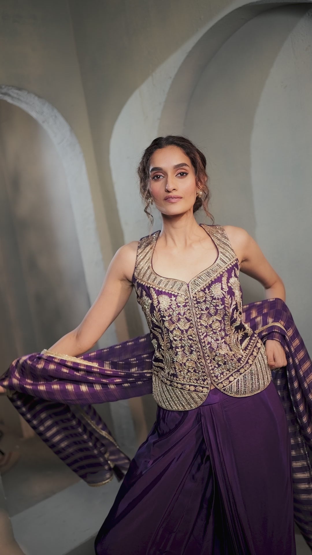Vibrant Purple Embellished Crepe Silk Skirt Set