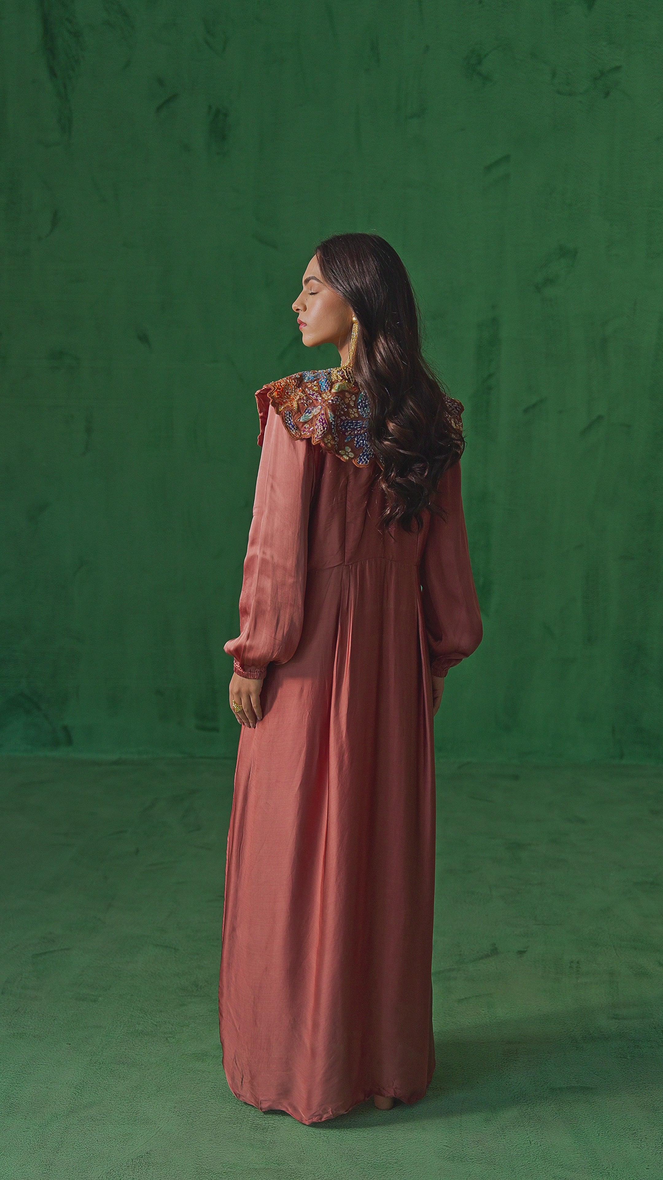 Rust Brown Embellished Satin Silk Gown