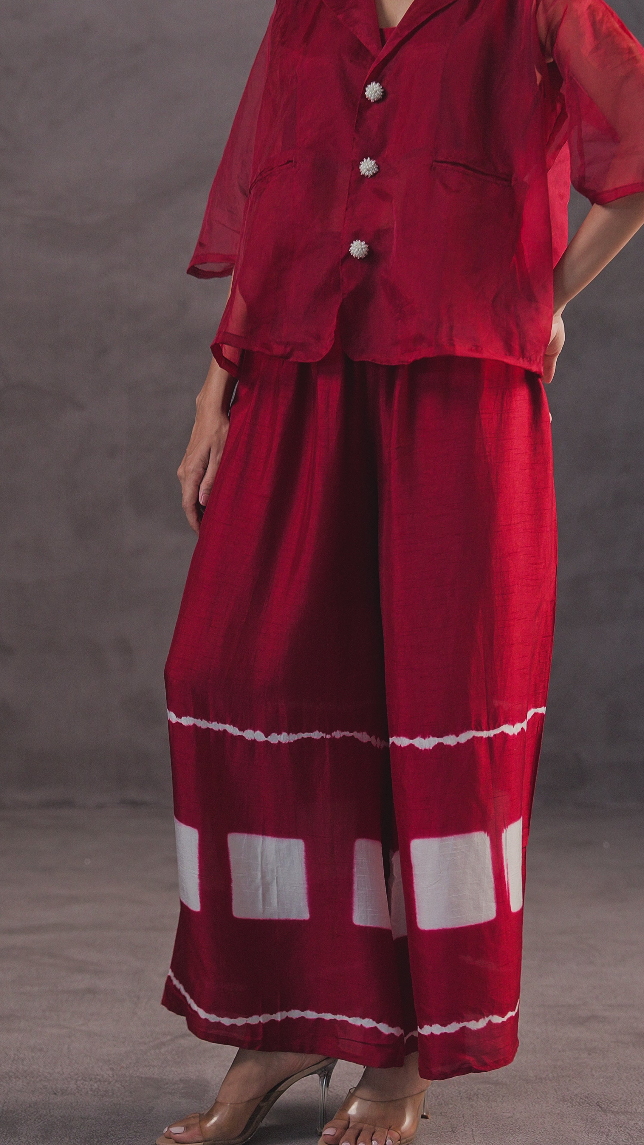 Crimson Red Tie Dye Raw Silk Co-Ord Set
