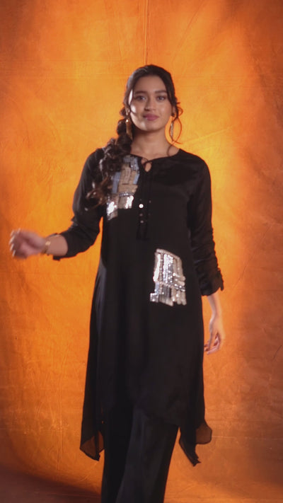 Black Embellished Chinon Silk Palazzo Set