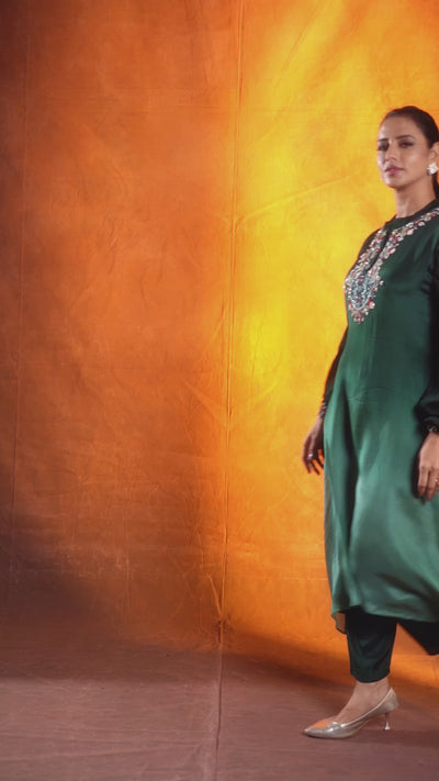 Dark Green to Sea Green Ombre Chinon Silk Kurta Set