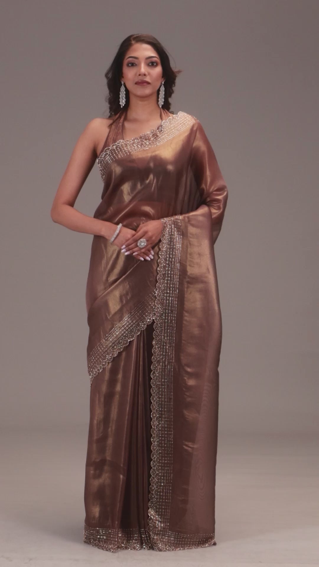 Metallic Brown Embellished Cosmo Tissue Silk Saree