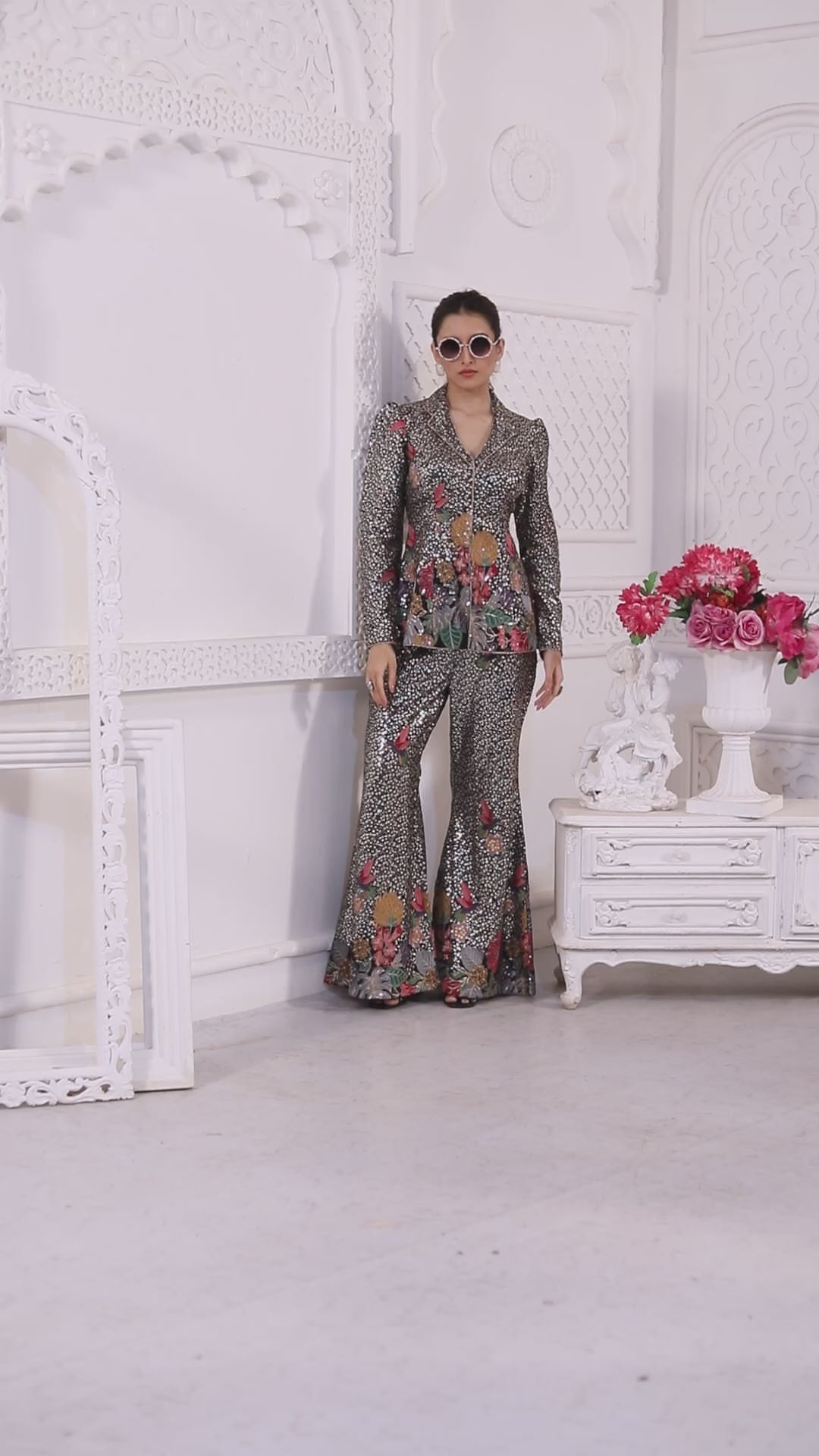 - Comes with a Blazer style top and a flowy palazzo pant.