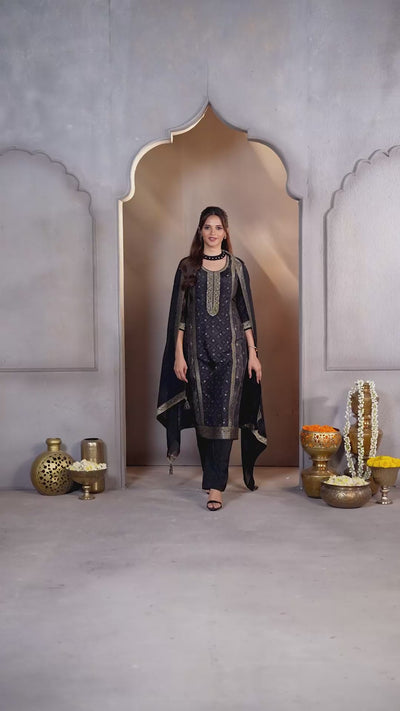 Jet Black Embellished Dola Silk Pant Set