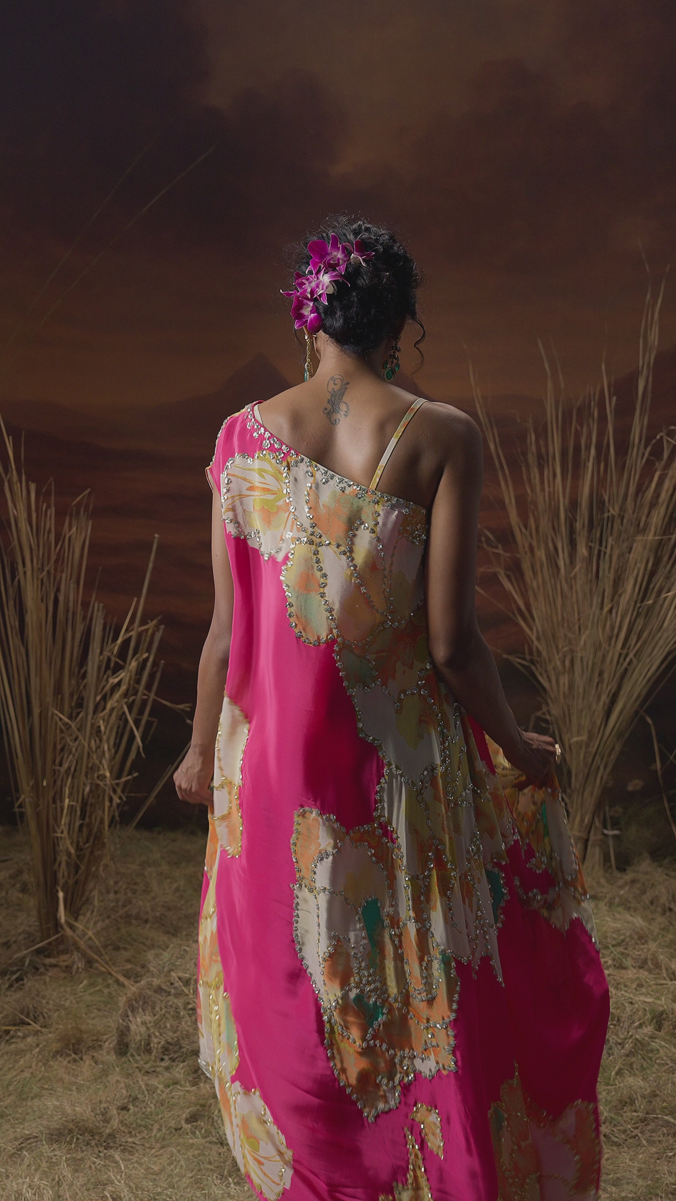 Work: Sequin, Stone, and Hand Embroidery with Digital Floral Print