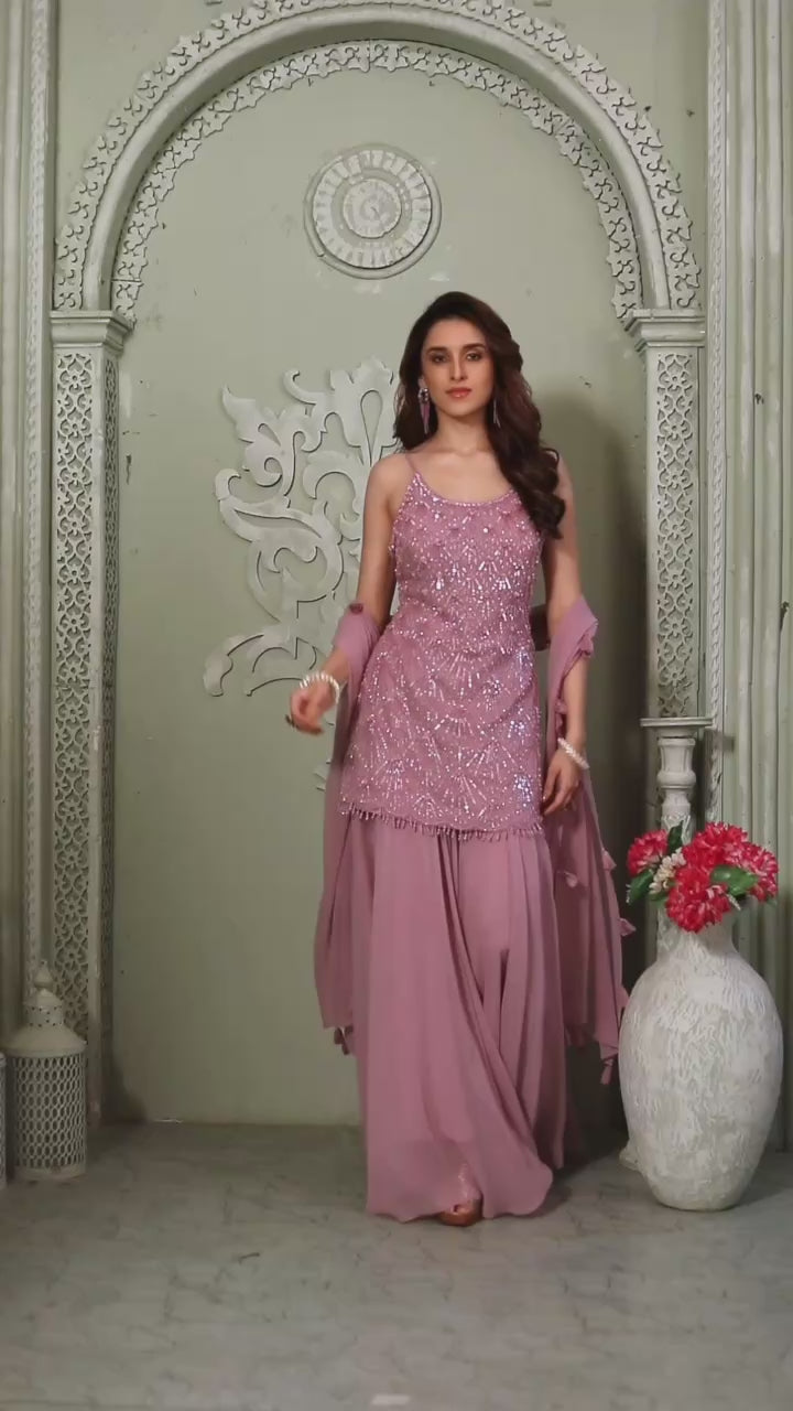Dusty Pink Delicate Sequins Tunic Palazzo Set