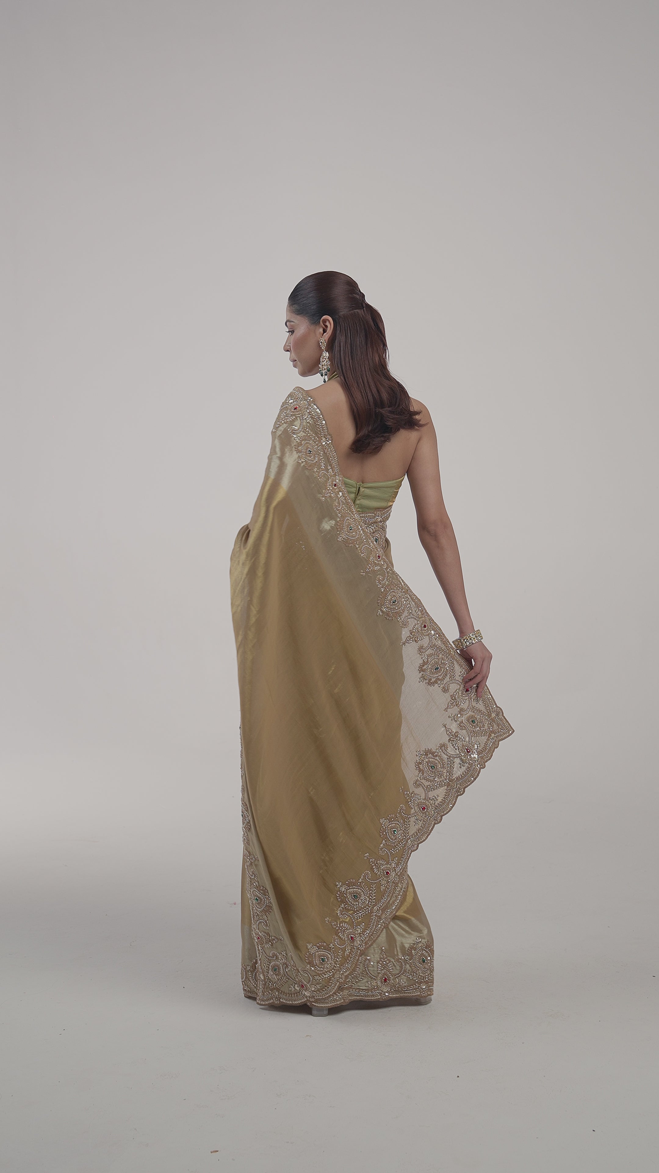 Vintage Gold Embellished Shimmer Tissue Silk Saree