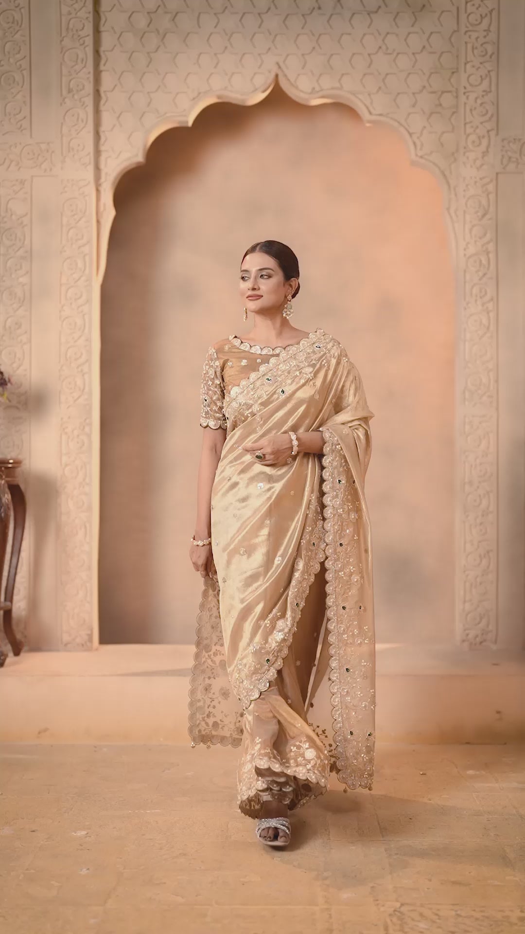 Golden Embellished Kora Zari Tissue Silk Saree