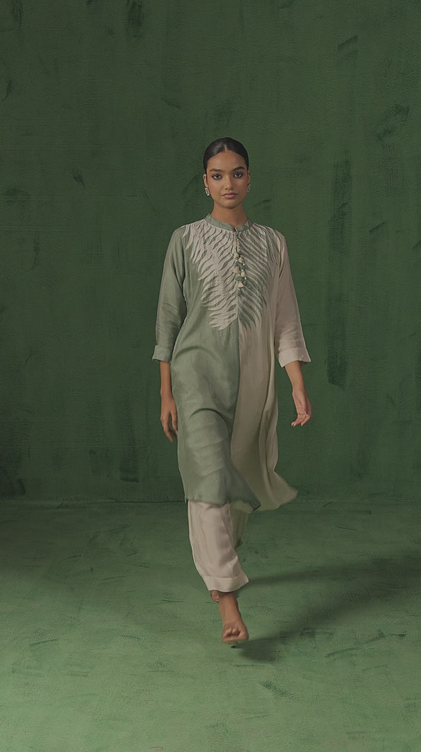 Green & White Embroidered Raw Silk Kurta Set