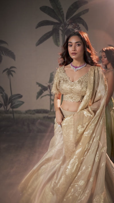 Pistachio Green Embellished Shimmer Tissue Silk Lehenga Set