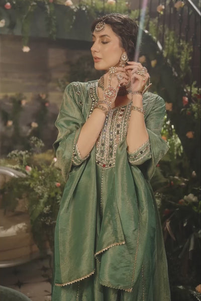 Jade Green Embellished Shimmer Tissue Silk Anarkali Set