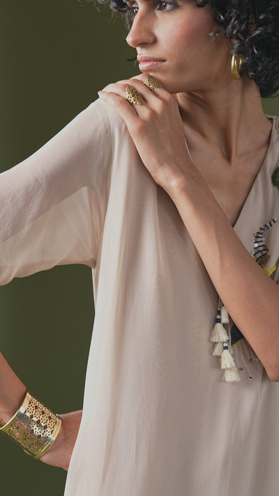 Champagne Beige Embellished Georgette Silk Kurta Set