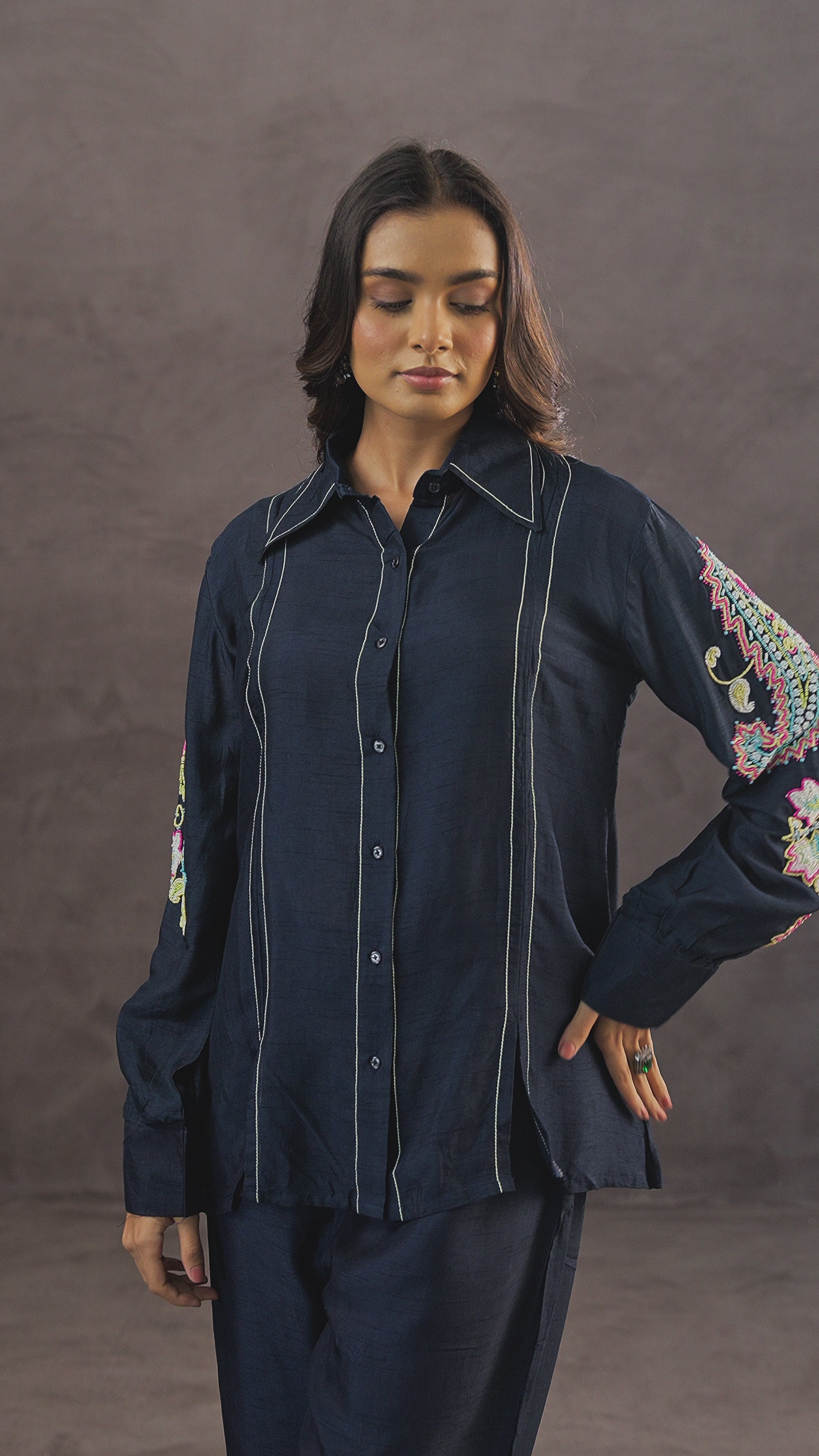 Midnight Blue Embroidered Raw Silk Co-Ord Set