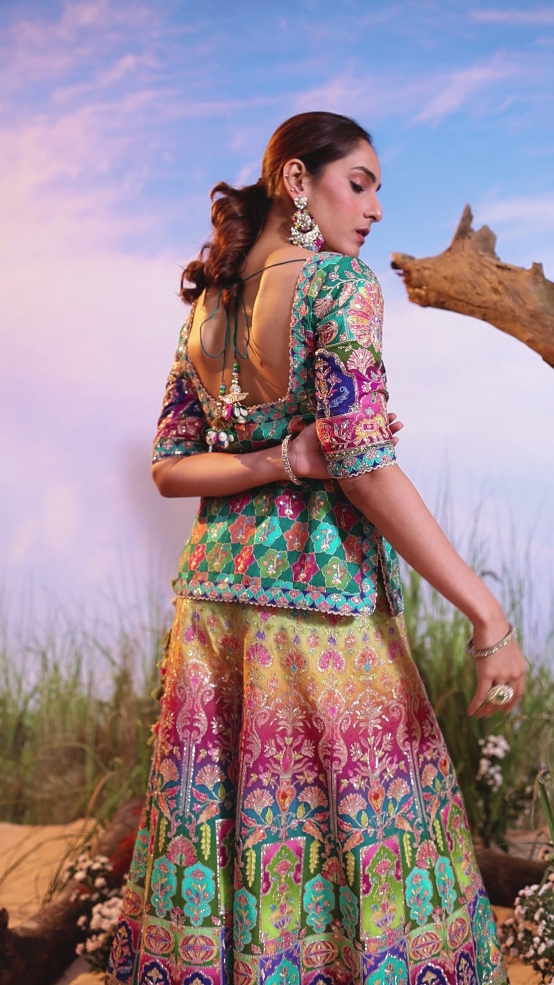 Work: Handwork, Mirror, Bead, Stone, Metallic Thread Work, Lace, Tassels, Drawstrings, and Traditional Paisley/Mughal Print.