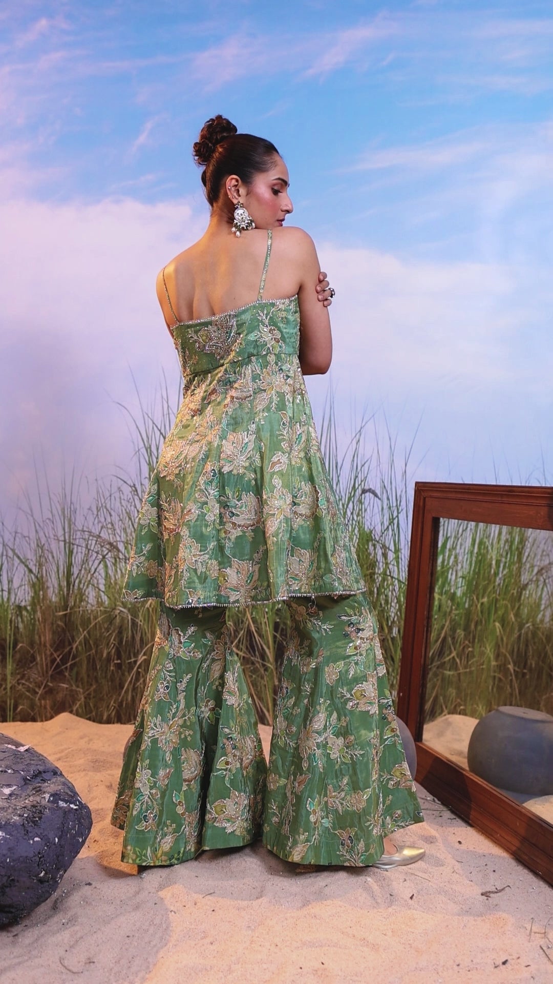 Sage Green Embellished Shimmer Tissue Silk Palazzo Set