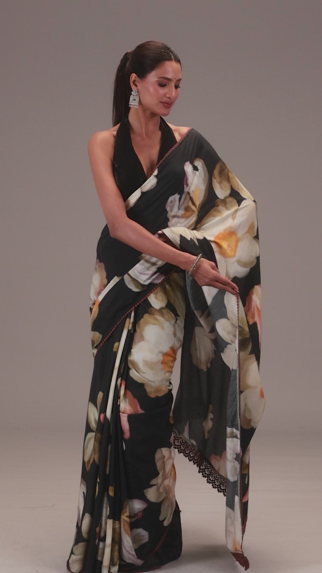 Look as fresh as a flower in our Jasmine Black Muslin Silk Saree. Adorned with floral prints. An ensemble that makes an unforgettable entrance and leave a lasting impression at all your semi-formal events.