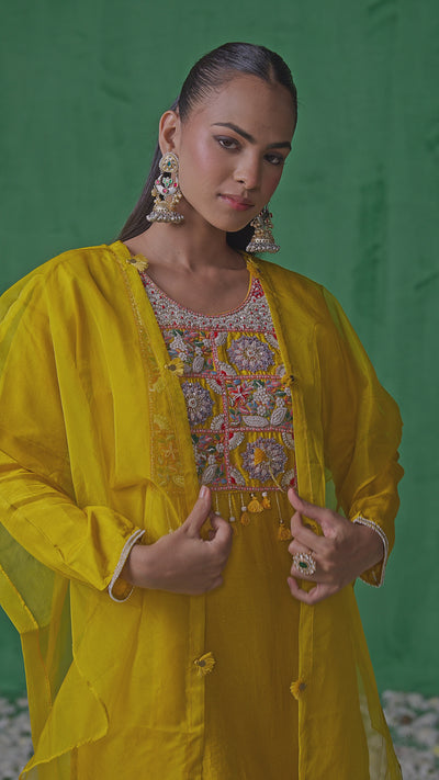 Mustard Yellow Embellished Raw Silk Sharara Set