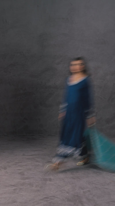 Teal Blue Embellished Raw Silk Anarkali Set