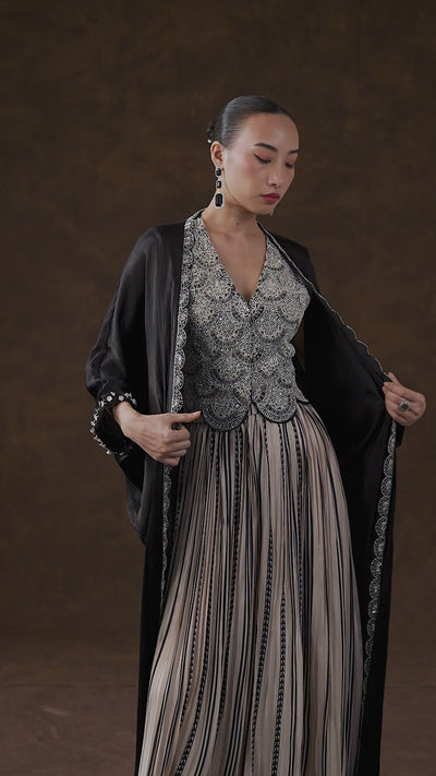 Obsidian Black Embellished Muslin Silk Cape Set
