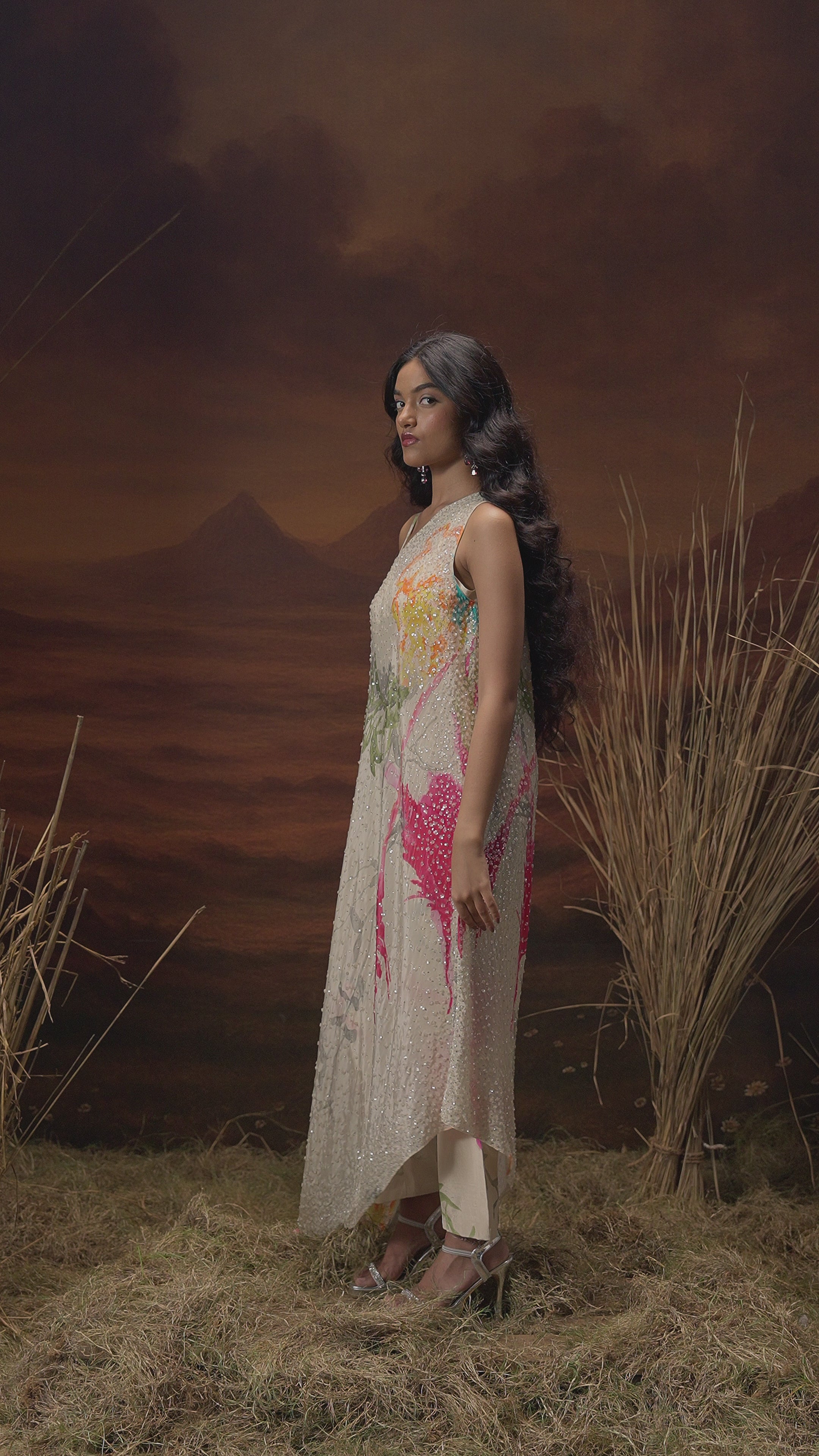 Work: Sequin, Stone, and Hand Embroidery with Digital Floral Print