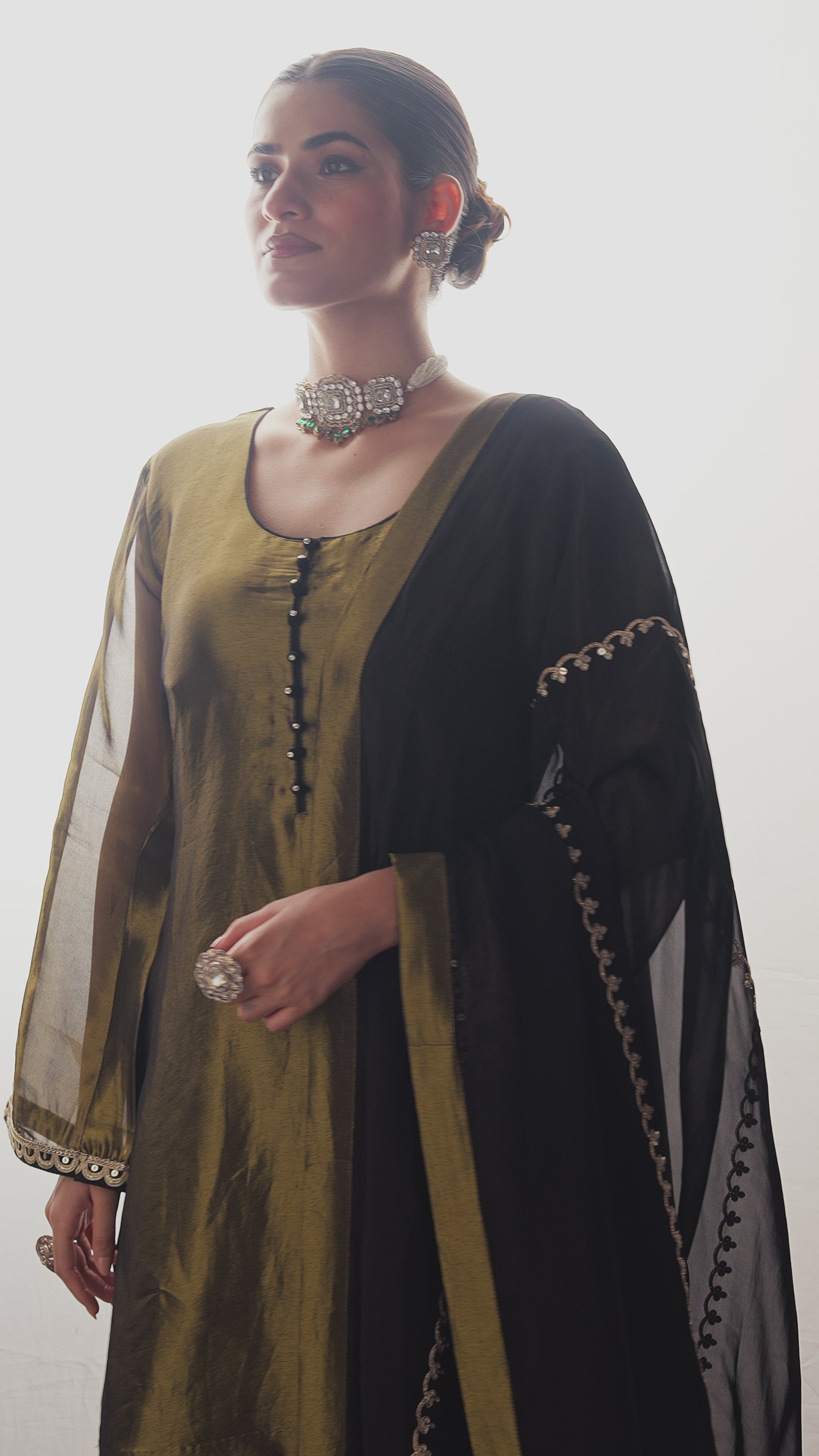 Olive Green Embellished Shimmer Tissue Silk Sharara Set