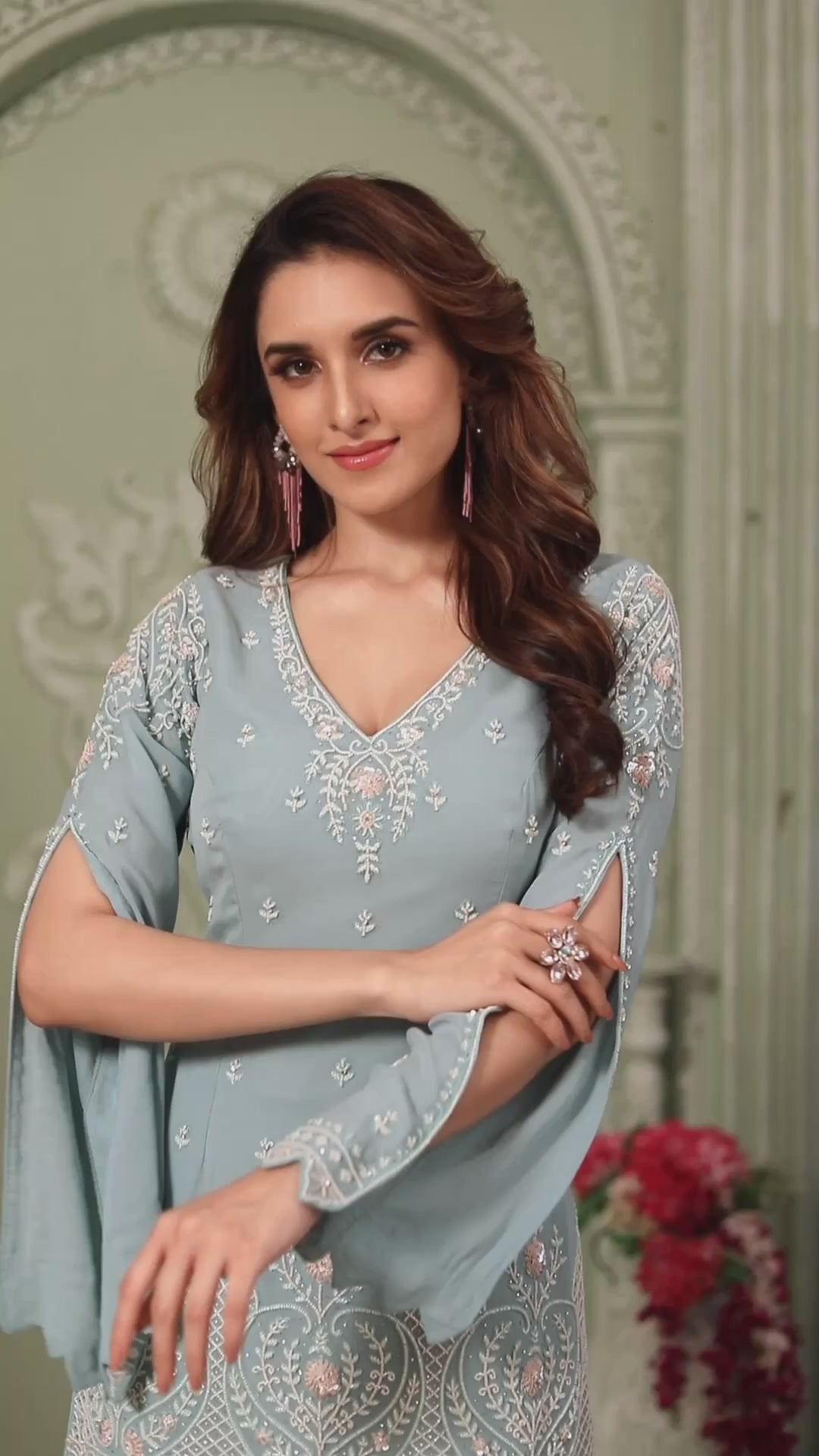 Pastel Blue Hand Embroidered Palazzo Set