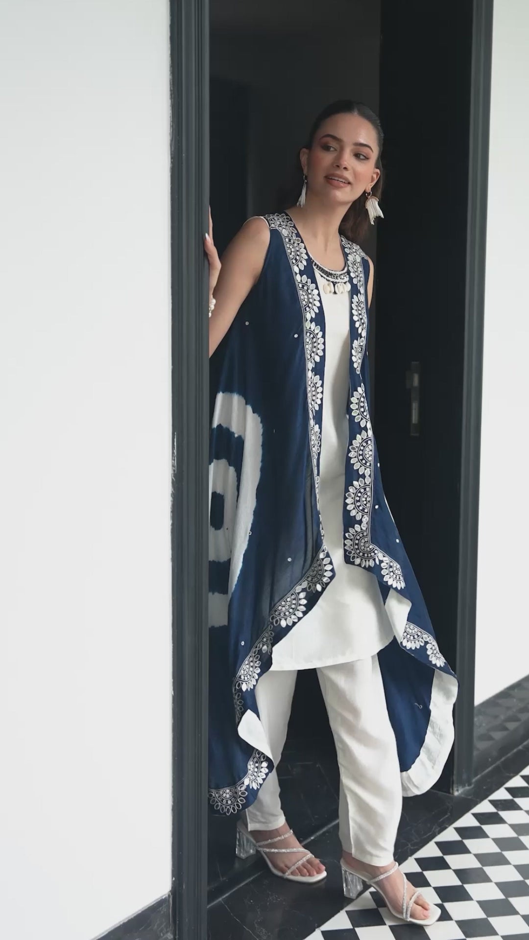 Color: Contrasting Navy Blue (Cape) and Pearl White (Top and Pant)