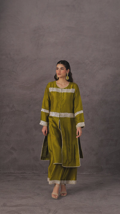 Olive Green Embellished Raw Silk Kurta Set