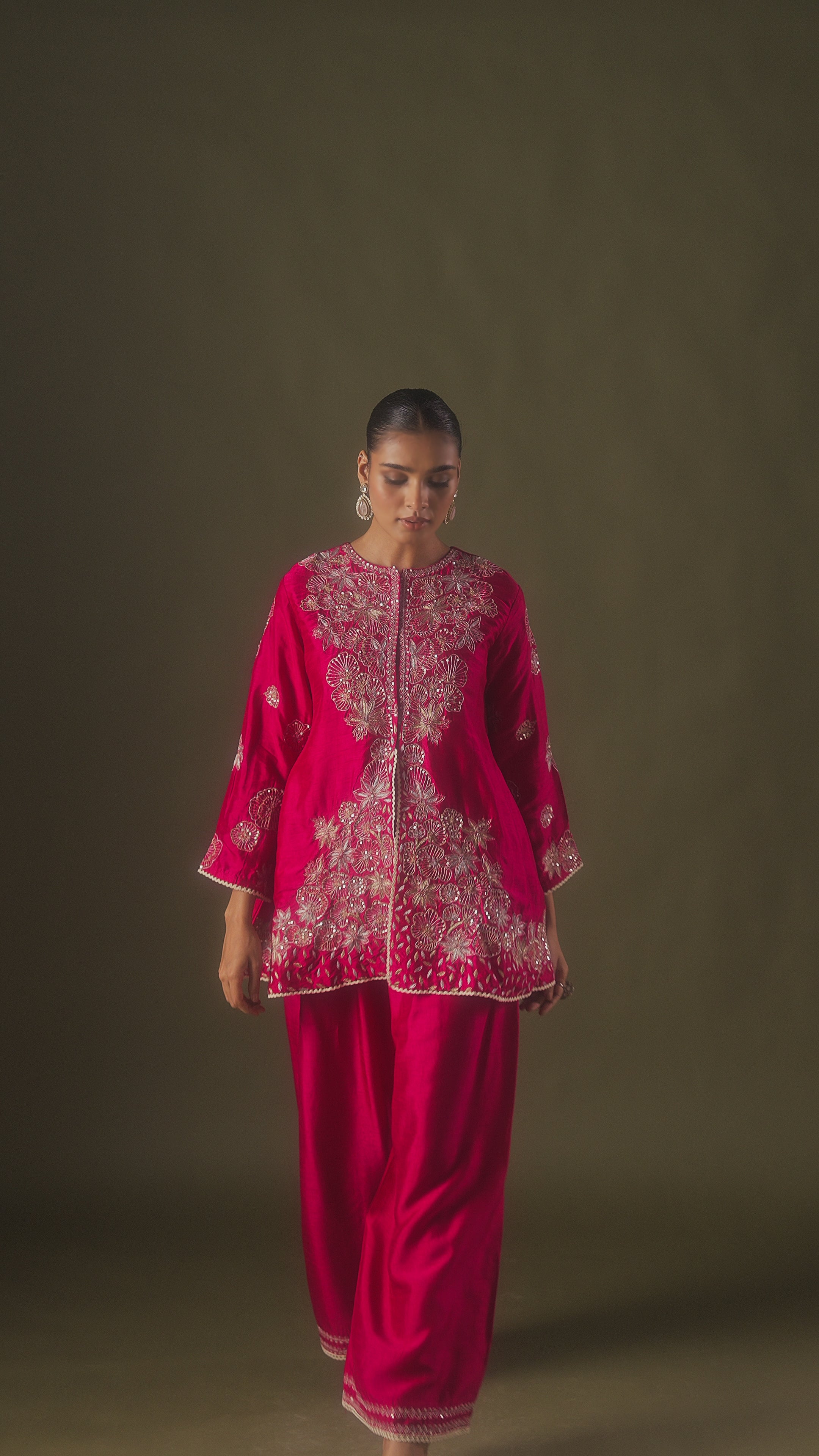 Queen's Pink Raw Silk Embellished Co-Ord Set