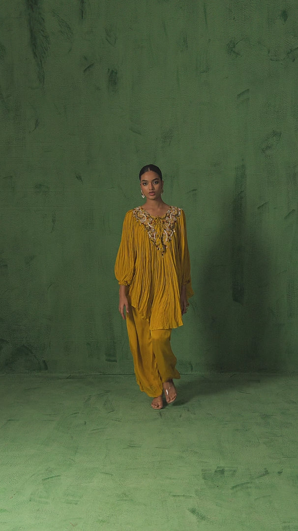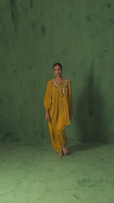 Honey Gold Embellished Chinon Silk Kaftan Co-Ord Set