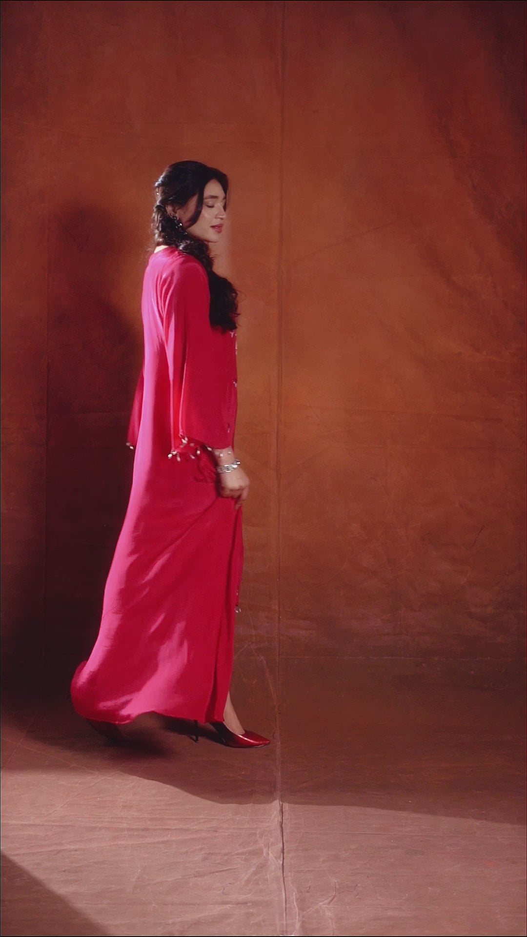 Crimson Red Embellished Chinon Silk Kurta Set
