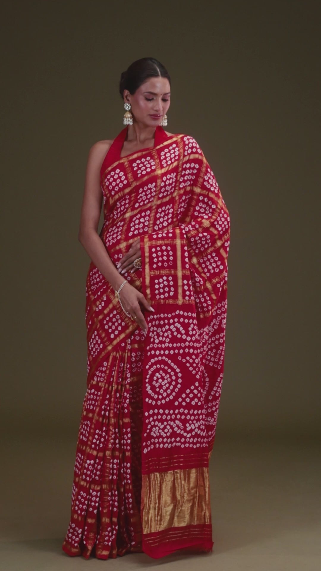 Red Bandhani Dola Silk Saree