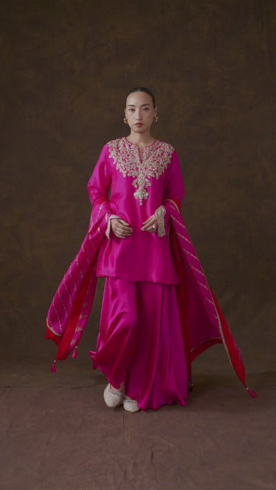 Rich Pink Embellished Raw Silk Palazzo Set