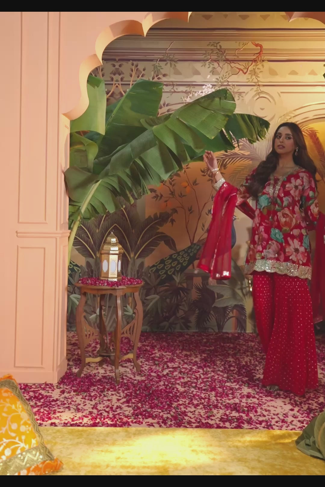 Exude unparalleled royalty in this magnificent Rich Red Sharara Set.