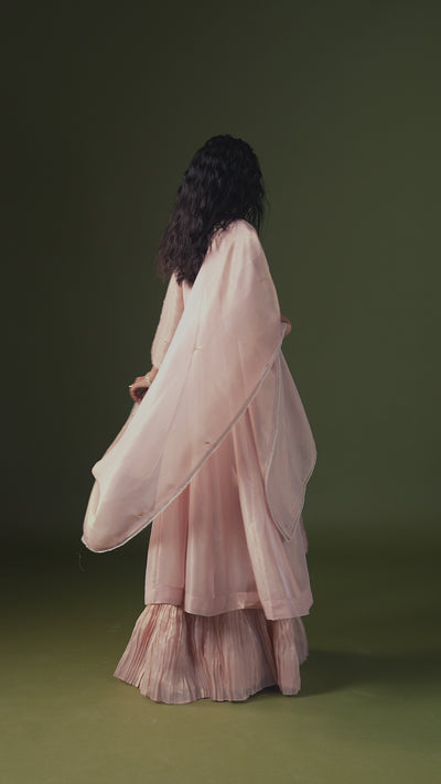 Rose Gold Embellished Shimmer Organza Silk Anarkali Set