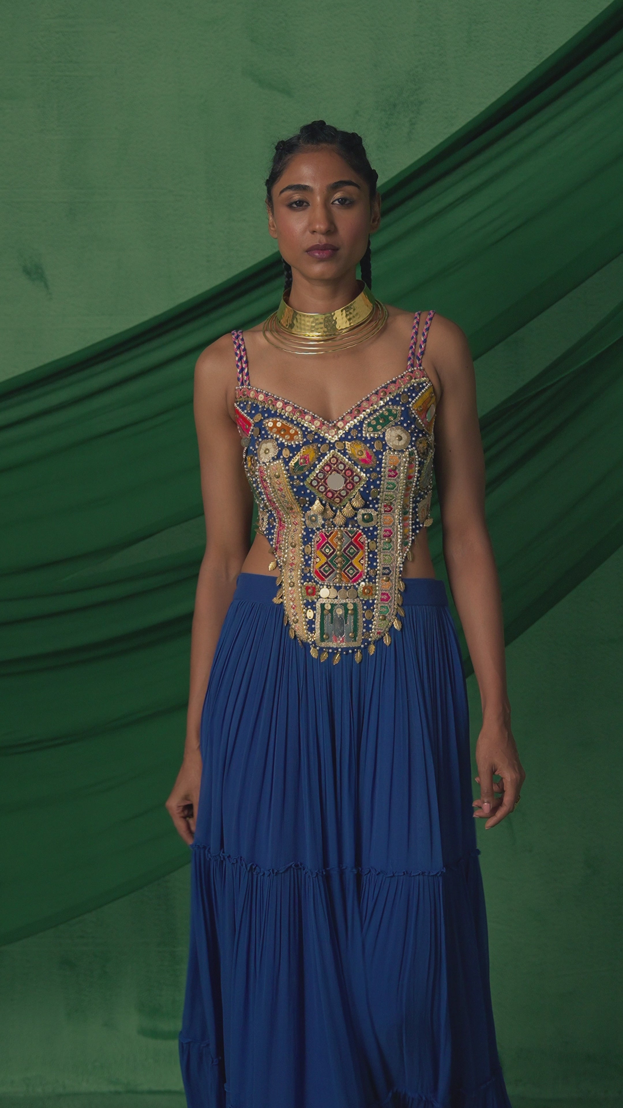 Command attention with every step in this show-stopping royal blue Indo Western gown, where tradition meets fierce contemporary charm.