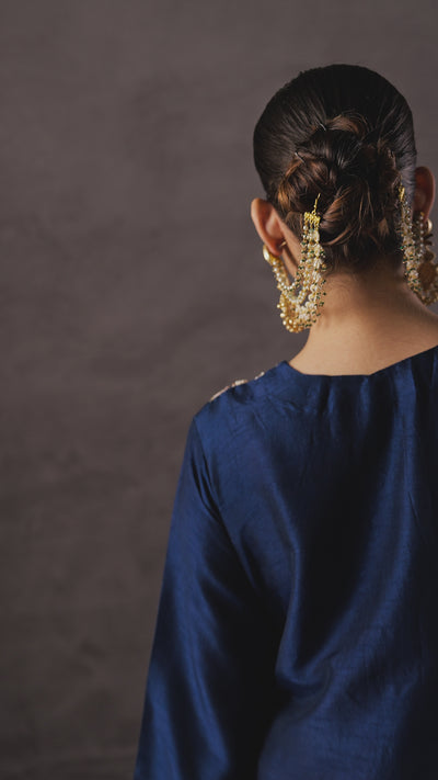 A stunning royal blue raw silk kurta pant set, exuding richness and elegance.
