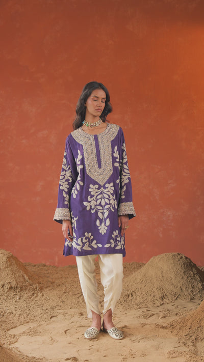 Embrace a fusion of tradition and contemporary style with this exquisite Royal Purple Dhoti Set.