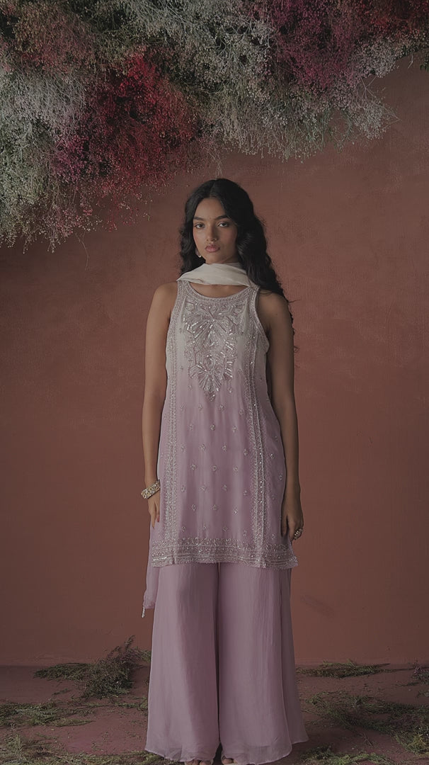 Lilac Pink Embellished Soft Organza Palazzo Set