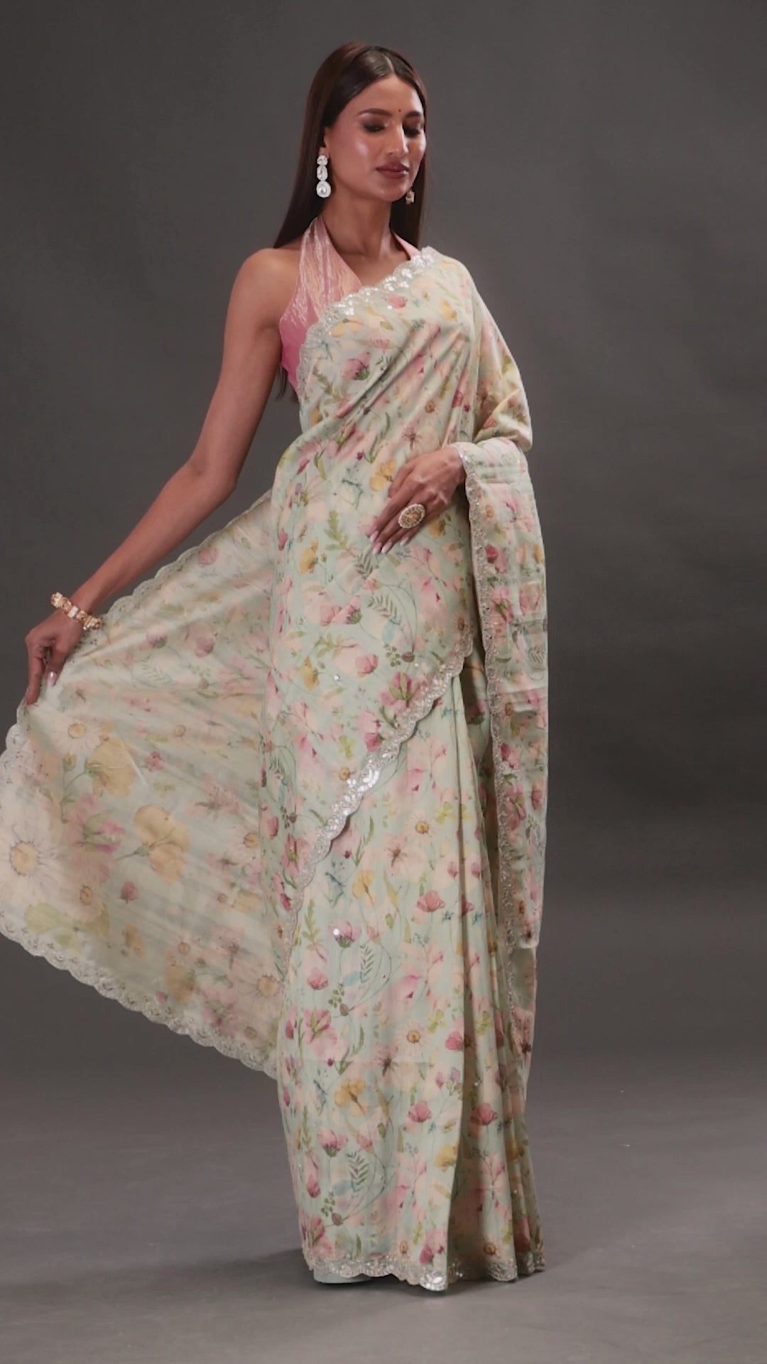 For the new beginnings you can go with our Blue Mist Floral Printed Tussar Silk Saree. Glamed up with enchanting floral prints, gottapati and aari tari work with scalloped border. An ensemble that makes an unforgettable entrance and leave a lasting impression at all your year-round festivities.