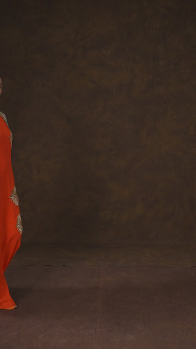 Vibrant Orange Embellished Chinon Silk Dress