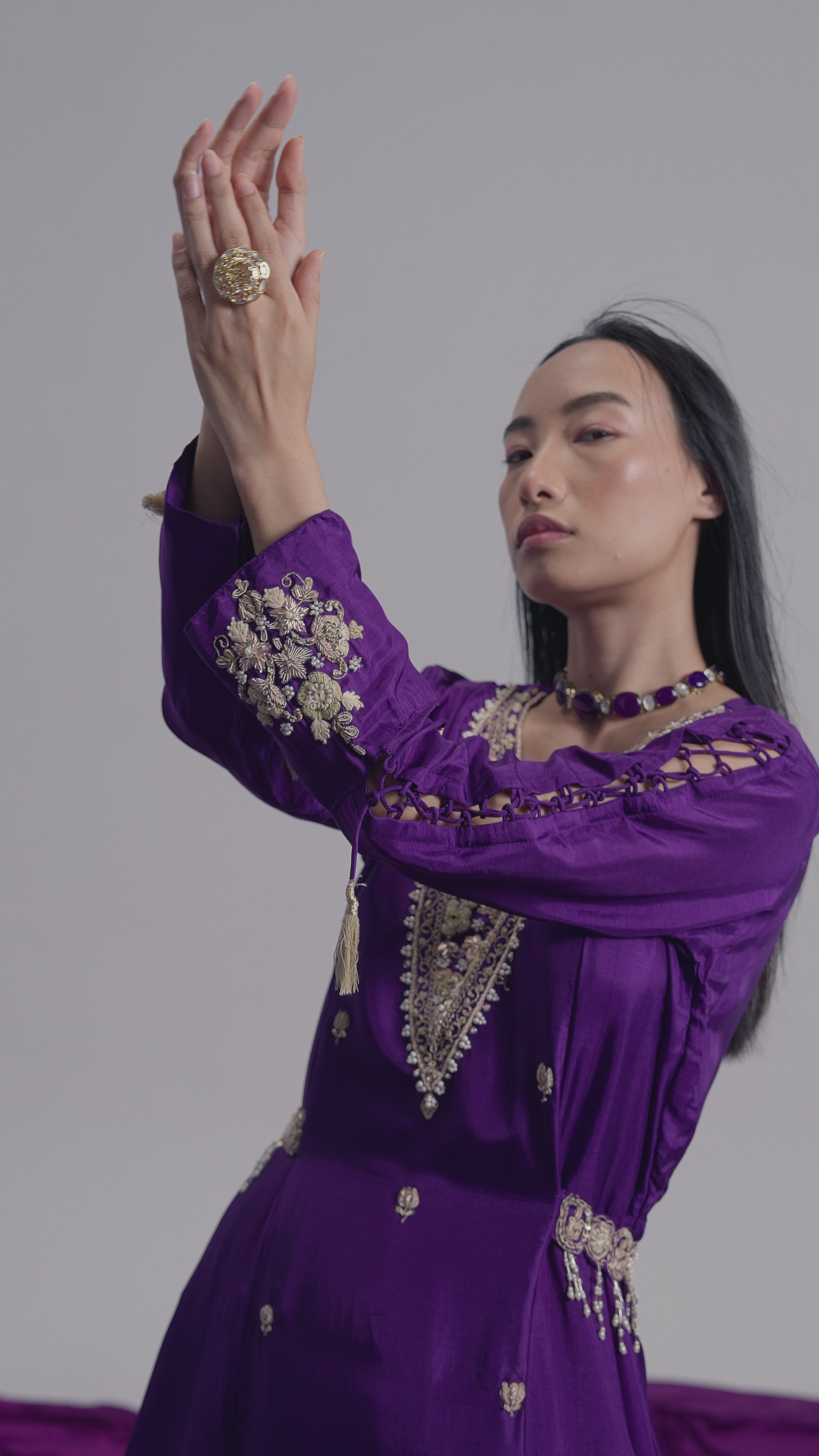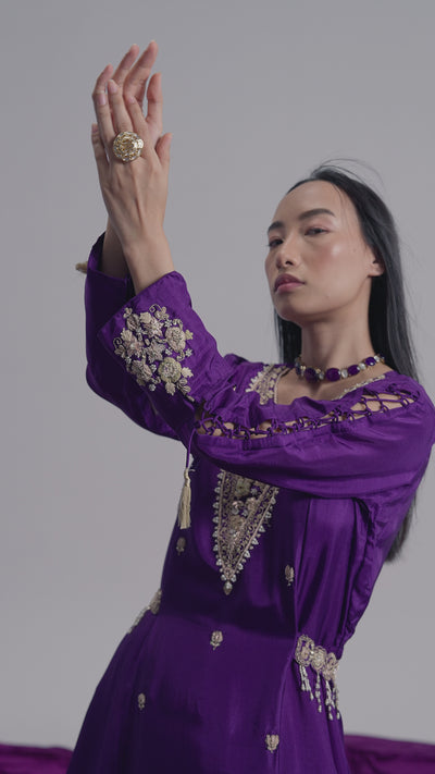 Make a bold style statement with this luxurious Purple Skirt Set, designed to blend regal charm with modern elegance.