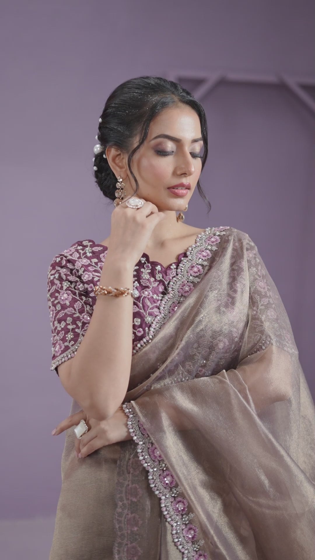 Drape yourself into ethnic elegance with our Wine Pure Banarasi Crush Silk Saree, featuring delicate sequins and stone handwork. The intricate embellishments on the saree add a touch of elegance, while it is paired with malai satin silk unstitch blouse completes the ensemble with a luxurious feel. Perfect for celebrations, this piece offers timeless beauty and sophistication.